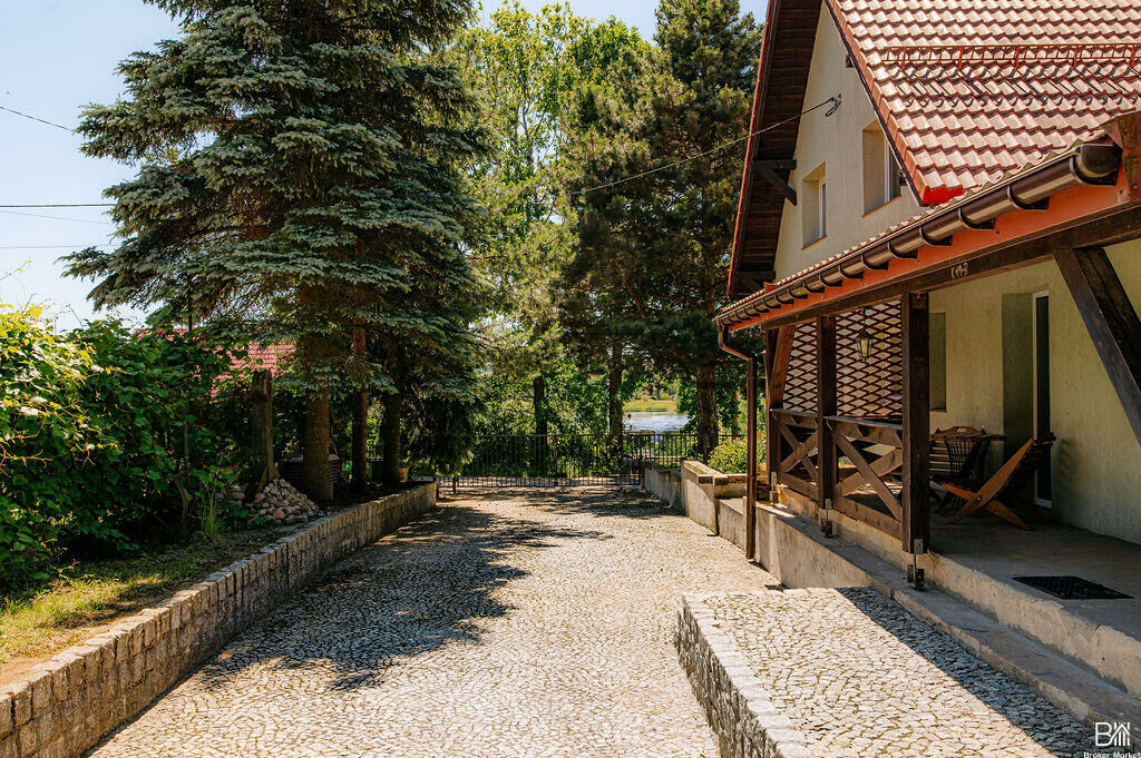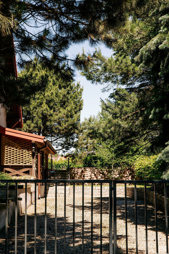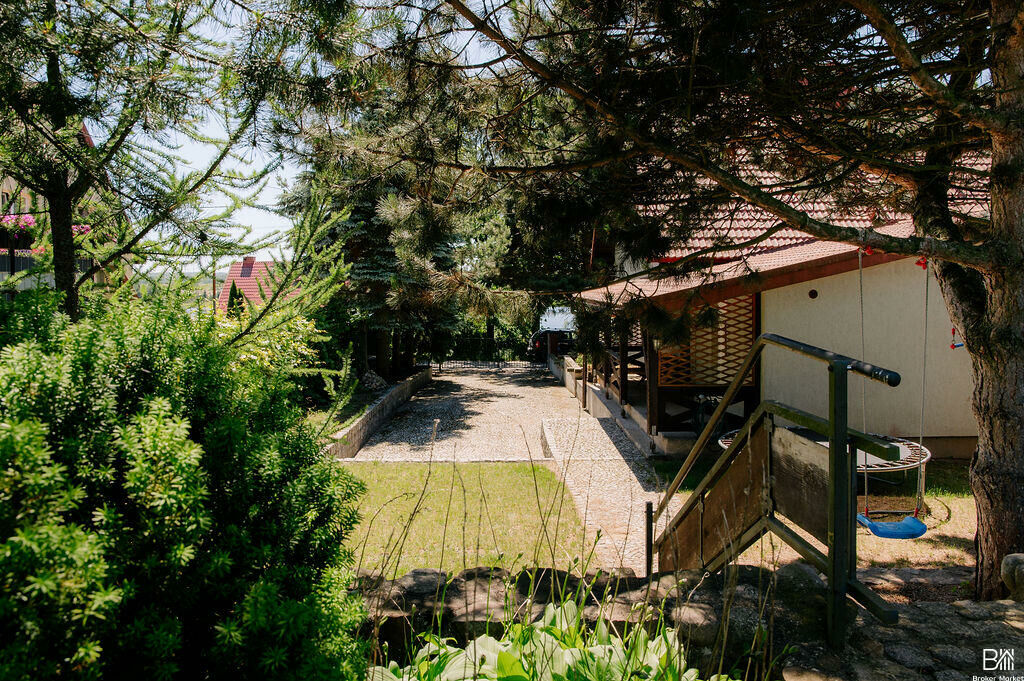 Dom posadowiony jest na w pełni ogrodzonej działce o powierzchni 613 m (działka prostokątna, wymiary ok.: 45 m x 13,6 m) na której znajdziemy liczne drzewa, winorośla, krzewy, kamienny grill oraz wiatę np. na rowery, czy drewno.