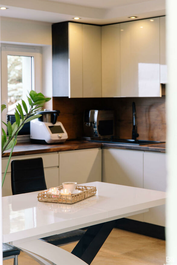 - montaż nowej zabudowy meblowej kuchni wraz z wymianą AGD,