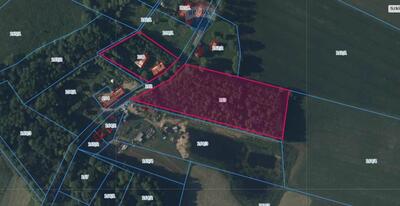 Dom (połowa budynku) wśród pól i lasów, w pięknym odosobnionym miejscu, ale w niewielkiej odległości (ok.350 m) od ...