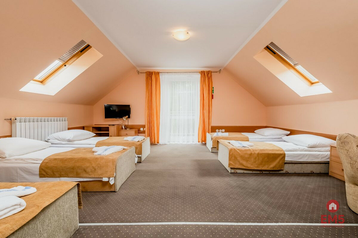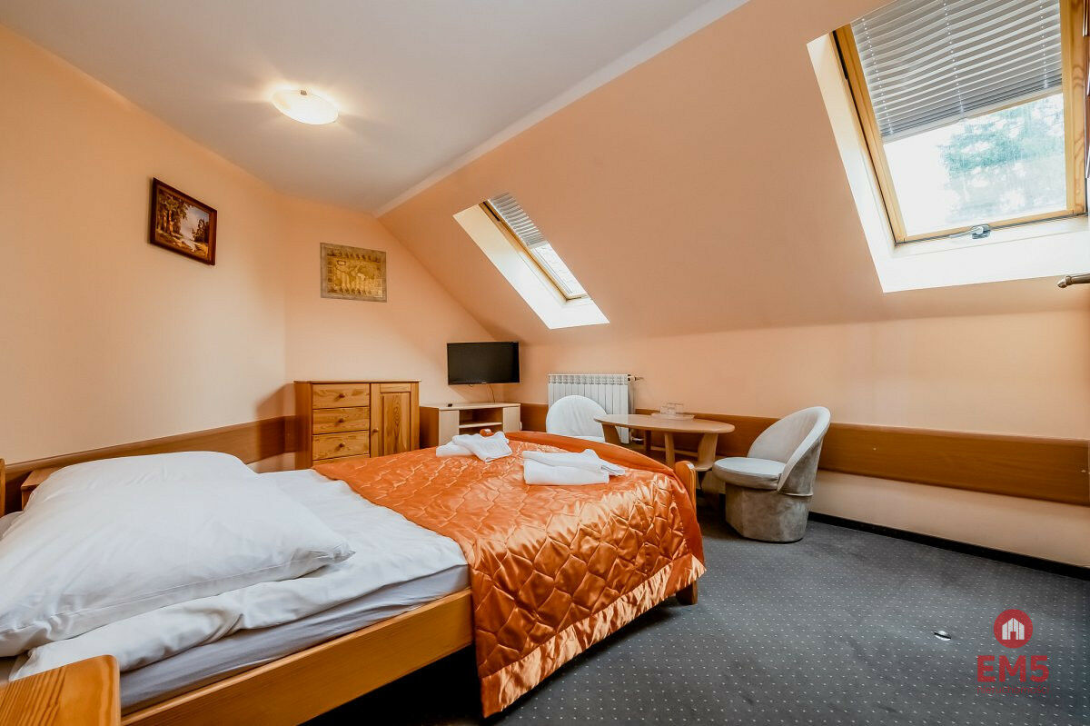Na sprzedaż: Kompleks wypoczynkowy Leśny Zakątek nad jeziorem Gołdap. Powierzchnia terenu: 68 702 m2 (6,8702 ha) Lokalizacja: Dzielnica uzdrowiskowa, Gołdap - jedno z najczystszych miejsc w Polsce Miejsce z potencjałem - gotowe do przejęcia i dalszego rozwoju! Położony w malowniczym parku krajobrazowym, nad brzegiem jeziora Gołdap, w sercu dzielnicy uzdrowiskowej. Teren o imponującej powierzchni prawie 7 hektarów zapewnia prywatność, przestrzeń i liczne możliwości inwestycyjne. Infrastruktura i zakwaterowanie: - Dwa budynki główne, ogrzewane piecami na ekogroszek - Źródło wody stanowi studnia z pompą, w razie awarii jest podłączenie miejskie - Piwnica 3x4m - Komfortowe apartamenty (część z balkonami), każdy z pełnym węzłem sanitarnym, TV, WiFi - Klimatyzowane pokoje na poddaszu - Restauracja i bar na miejscu - Zadaszony, drewniany pub na 40 osób - Miejska kanalizacja, gaz z butli do kuchni - Panele fotowoltaiczne na dachach - niższe koszty energii! Atrakcje i udogodnienia: Bezpośredni dostęp do jeziora z pięknym brzegiem i kładką, wypożyczalnia rowerów wodnych i sprzętu sportowego, 3 sauny, jacuzzi, 2 place zabaw, boisko, siłownia podniebna. Przestrzeń idealna do organizacji: - szkoleń, konferencji, spotkań biznesowych - przyjęć rodzinnych i integracyjnych - kameralnych wydarzeń towarzyskich Lokalizacja - zdrowie i natura: - Strefa mikroklimatyczna bogata w jod - najczystsze powietrze w Polsce! W lesie, zaledwie: 1 km od tężni solankowej, 500 m od sanatorium, w którym goście mogą korzystać z zabiegów leczniczych. Położenie w otoczeniu natury, a jednocześnie blisko infrastruktury uzdrowiskowej. Idealna inwestycja: Gotowy, funkcjonujący ośrodek z renomą i dużym potencjałem - zarówno do prowadzenia działalności turystycznej, rekreacyjnej, jak i rozwoju oferty zdrowotno-sanatoryjnej. Kompleks powstał w 2002 roku. Skontaktuj się, by umówić się na prezentację lub uzyskać więcej informacji. To miejsce może stać się Twoją dochodową inwestycją i enklawą spokoju dla setek gości.Numer oferty: 190564