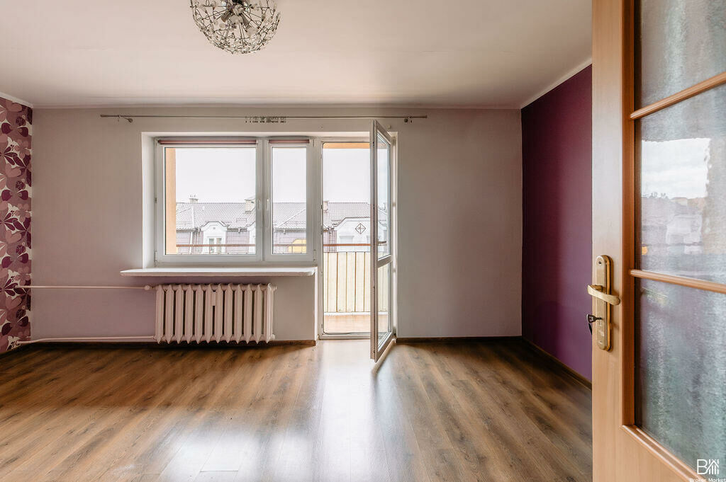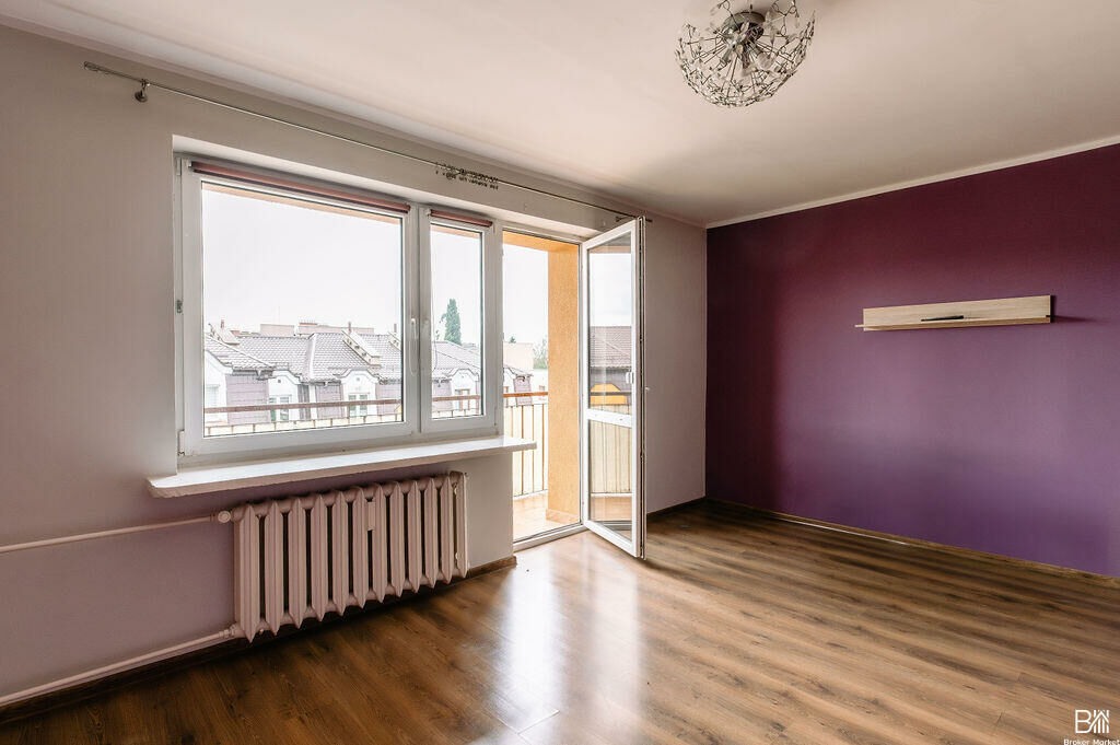- Możliwość wydzielenia dwóch sypialni oraz salonu z aneksem kuchennym i wyjściem na balkon.