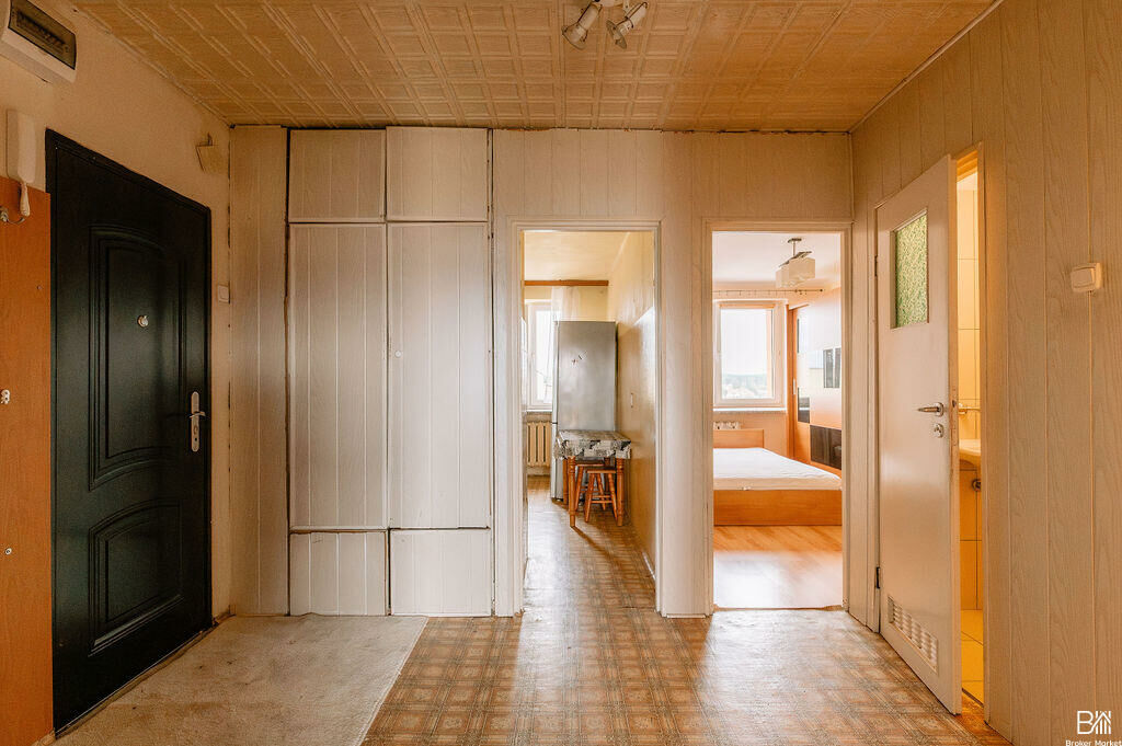 - Przestronny korytarz (7,4 m) z dużą szafą wnękową, który można wykorzystać jako funkcjonalną przestrzeń do przechowywania lub częściowo ją zmniejszyć, aby powiększyć pokój z balkonem (18,9 m), który jest idealną przestrzenią na strefę dzienną.