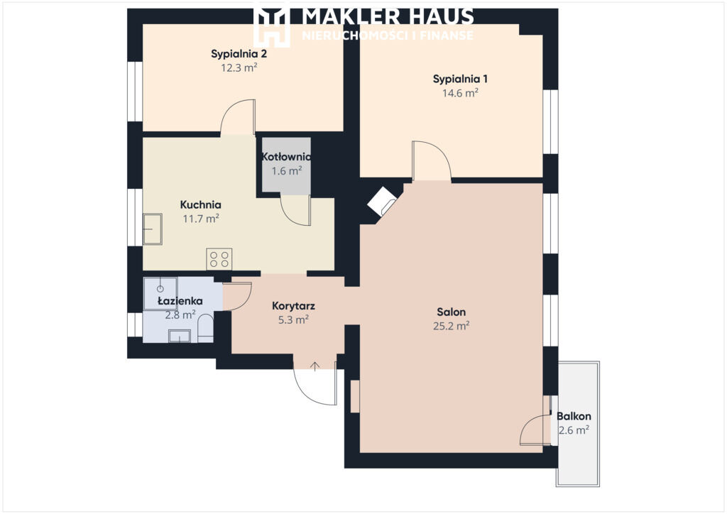 Sypialnia 2 (12,3 m²) – idealna na pokój dziecięcy, gościnny lub