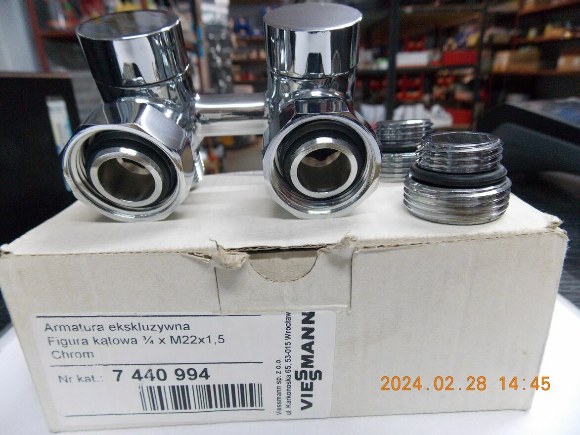 ZAWÓR GRZEJNIKOWY PODWÓJNY KĄTOWY CHROM VIESSMANN